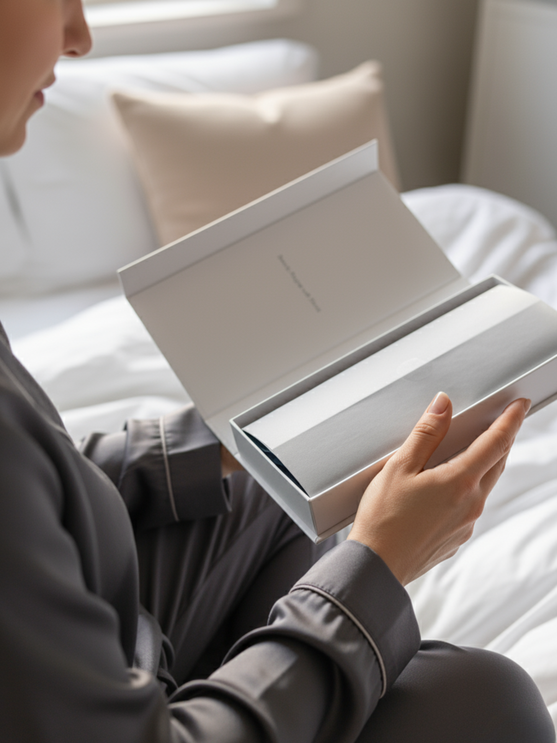 Discover a deeper kind of sleep with Soluna Silk. Designed to gently block all light and ease pressure around the eyes.