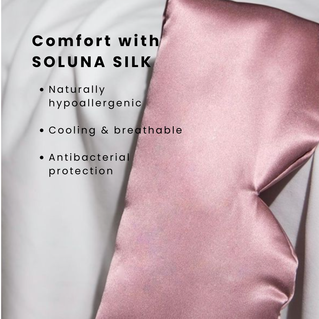 Designed to care for your skin while you rest. The Soluna Silk mask helps reduce puffiness, keeps your skin clear, and feels soft on every touch.